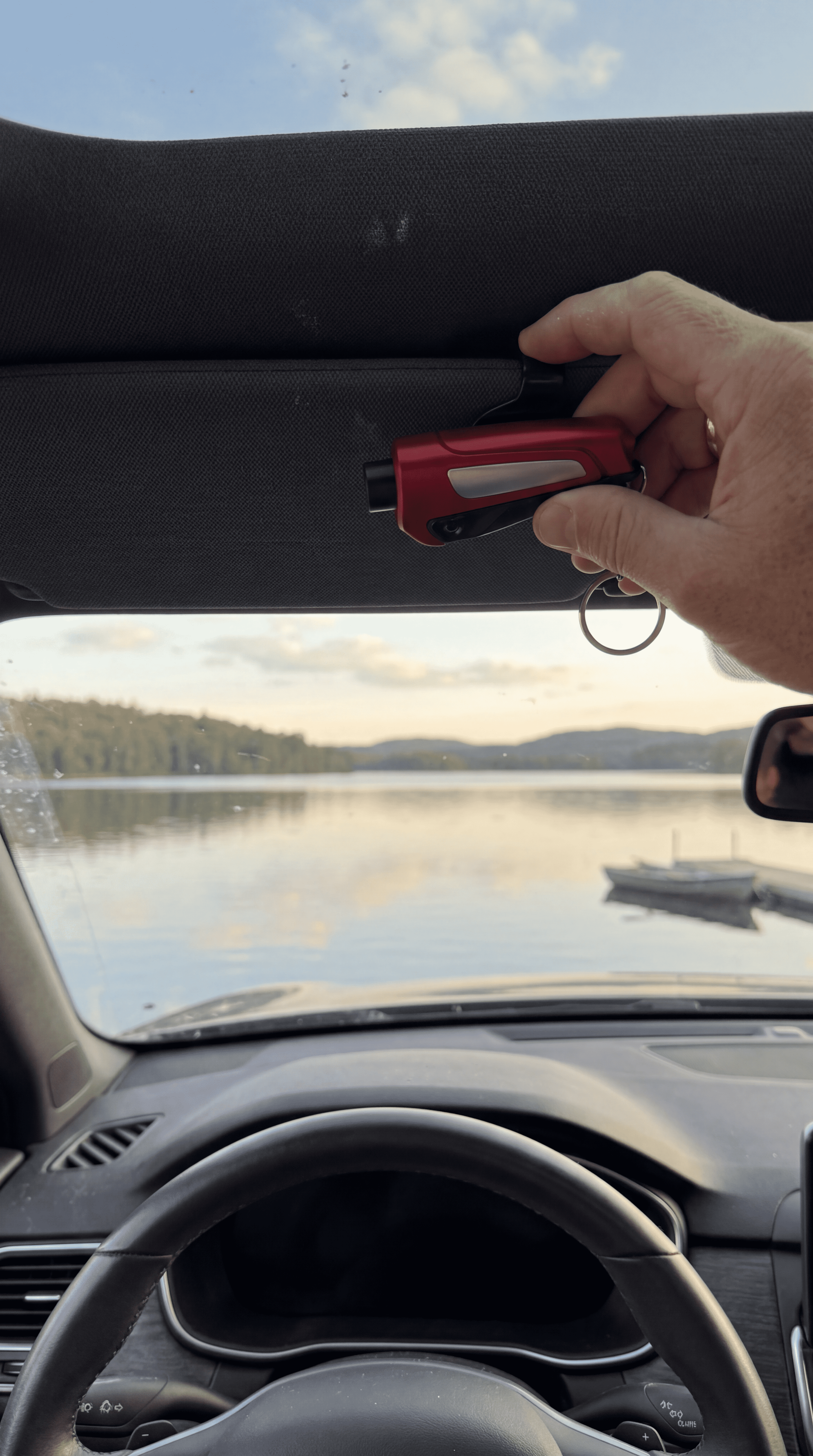 a vehicle escape tool designed for the 60 seconds that actually matter, without the tacticool bulk or the glovebox guesswork.
